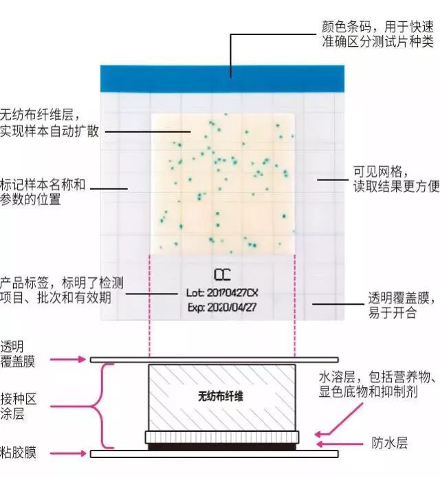 MC-Media微生物测试片包含一系列产品,涵盖了食品和饮料行业的主要应用。显色指示剂的应用使得结果更特异更易于判读。